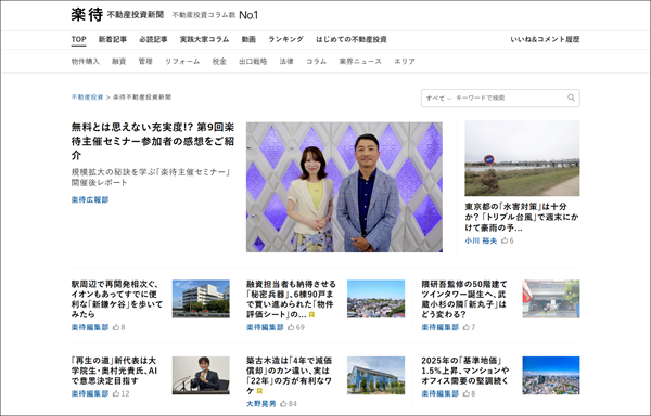 ・不動産投資コラム数No.1(*1)のウェブメディア「楽待新聞」のサイトデザインを刷新